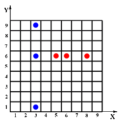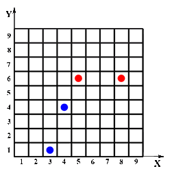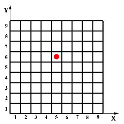 Zu dieser y-Koordinate wählt der Spieler willkürlich eine x-Koordinate von 1 bis 9 und zeichnet den Punkt in das Koordinatensystem.