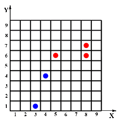 | 5. Zug: Spieler A setzt auf x = 8 und y = 7 |