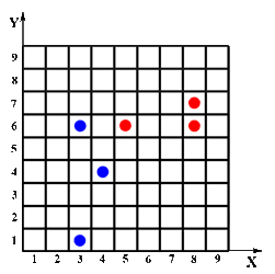 3. Zug: Spieler A setzt auf x = 8 und y = 6 |