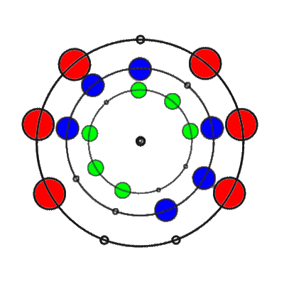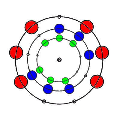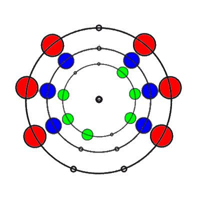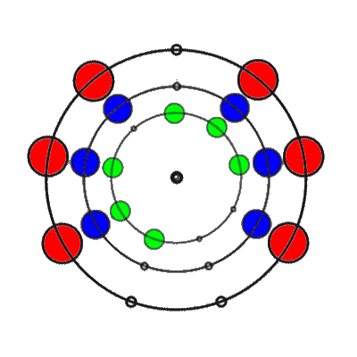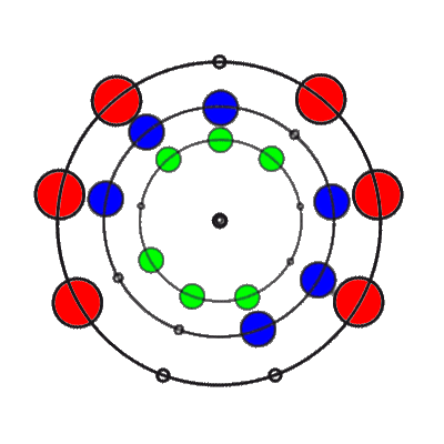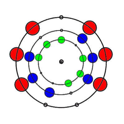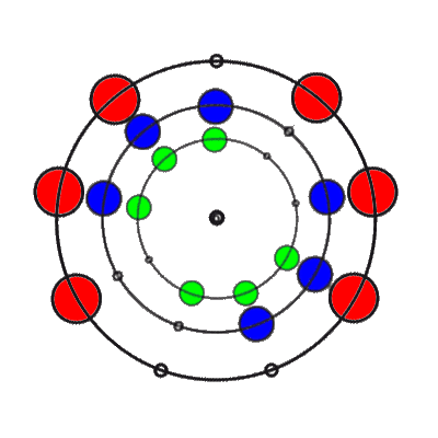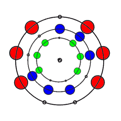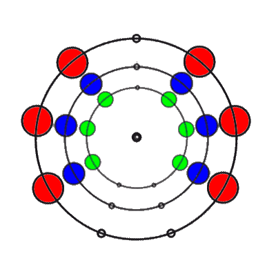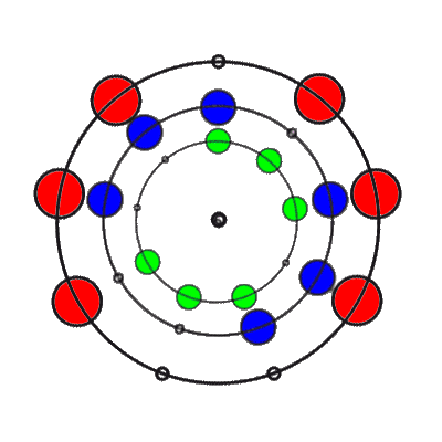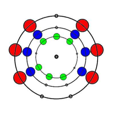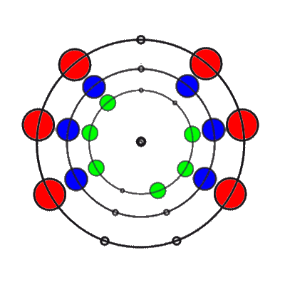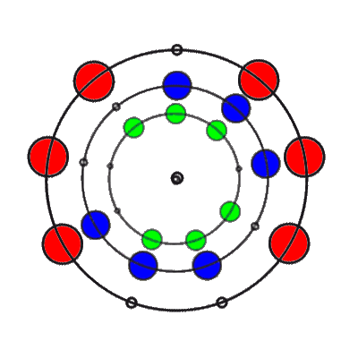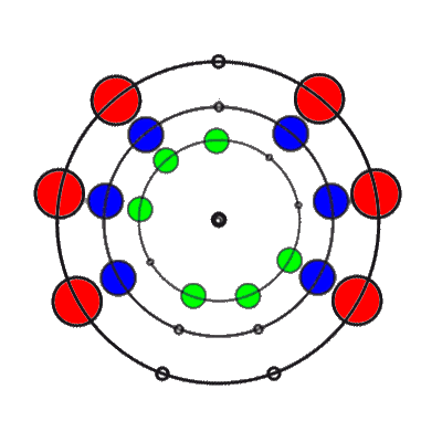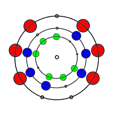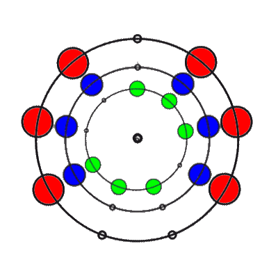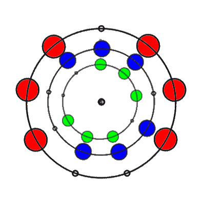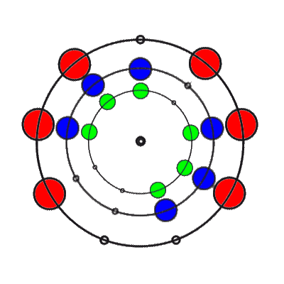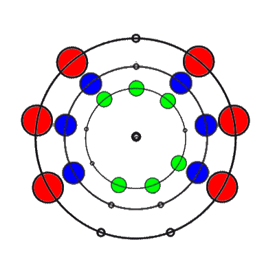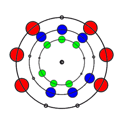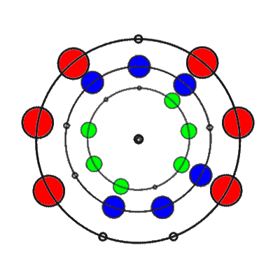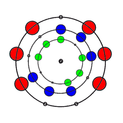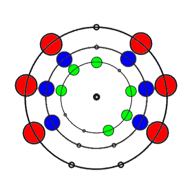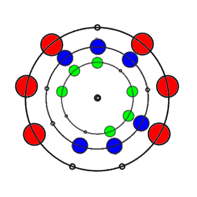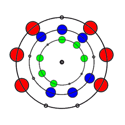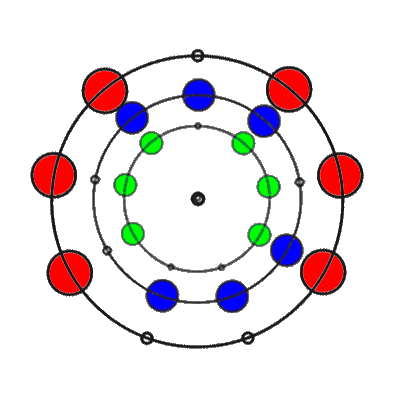 In den 9 Stellungen, die die 3 Ringe einnehmen können, sind die Anzahl der übereinander liegenden Markierungen 0, 1, 2 oder 3. Es gibt 8 verschiedene Kombinationsmöglichkeiten rund um den Ring