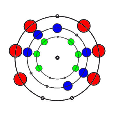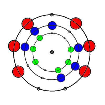 Die 9 Positionen, die durch drei mal Drehen des 2. Teilringes entstehen können: