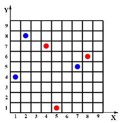 er setzt in der Reihe y (y = gewürfelte Zahl) seinen ersten Stein auf ein beliebiges Feld ( 0 < x < 10).