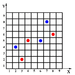 | 1. Zug: Spieler A setzt auf x = 5 und y = 4 |