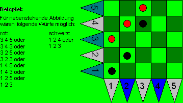 Spielfeld plaziert, für jede Würfelzahl einer. Die Würfelzahl