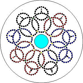 Die Planeten sind durch die Kraftfelder (große Kreise) mit dem Startfeld