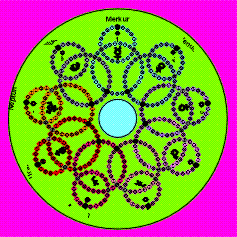 und deren Kraftfeldern. Jeder Planet ist entsprechend seiner Position im Sonnensystem